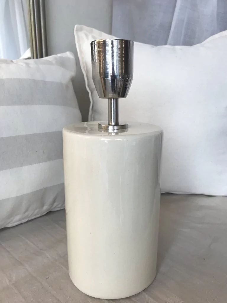 Lámpara Calisto, cerámica esmaltada. Terminación metálica plata